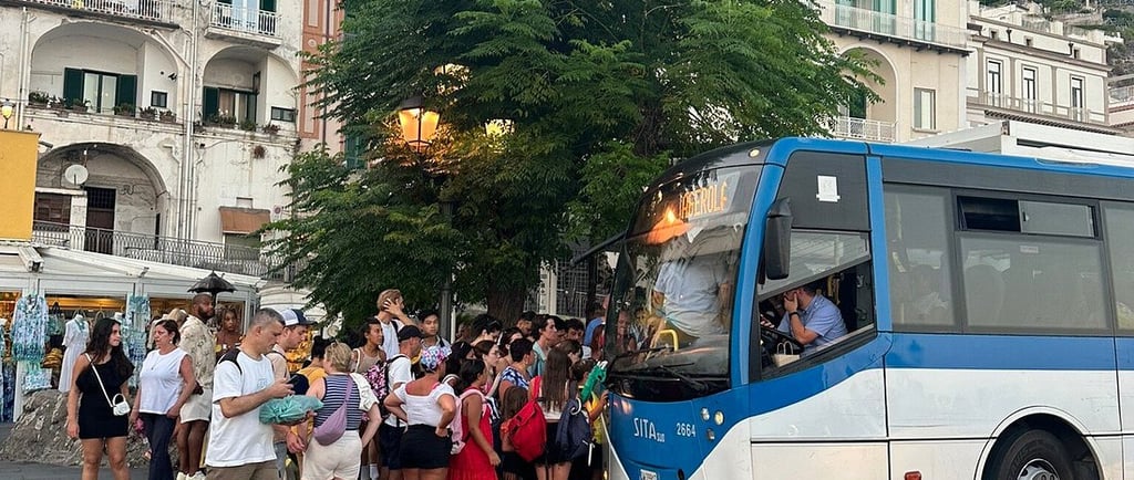 The coastal road (SS163) is famous for its stunning views—but also for being extremely narrow and busy. In peak season, traffic can crawl, and buses often take up most of the road as they navigate tight turns.